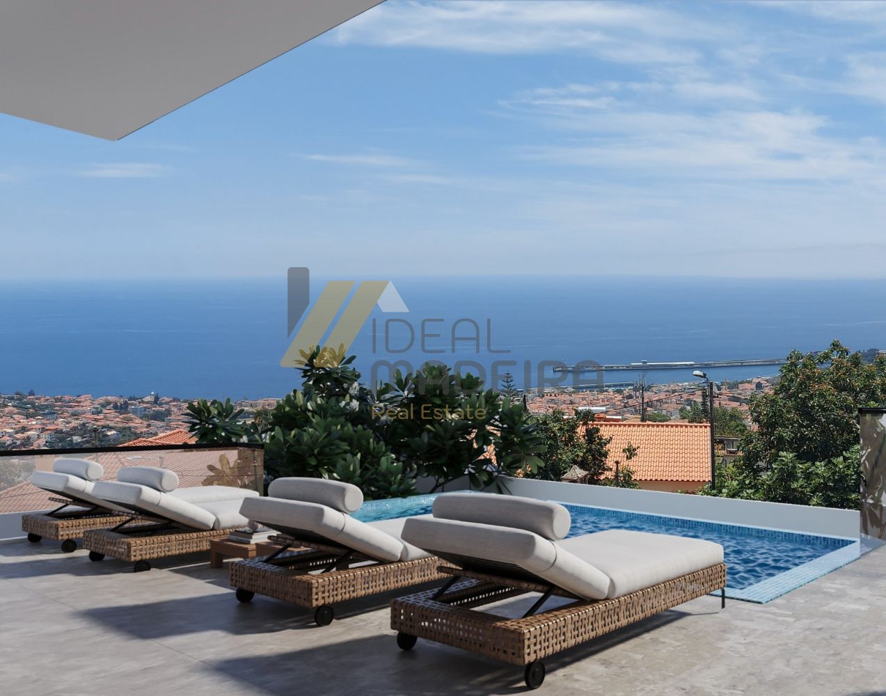 Moradia T3 de luxo com vista deslumbrante sobre o Oceano e a Baía do Funchal Apresentamos uma moradia de arquitetura contemporânea em fase de construção, situada numa das localizações mais privilegiadas do Funchal. Pensada ao detalhe para oferecer conforto, elegância e uma relação única com a paisagem, esta residência distingue-se pela vista soberba sobre o oceano Atlântico e a encantadora baía do Funchal. Com um design moderno e linhas depuradas, esta moradia T3 combina materiais de elevada qualidade com um conceito de luminosidade e harmonia. O espaço exterior é complementado por uma piscina infinita, que se funde com o horizonte e convida à serenidade e contemplação. A moradia está equipada com elevador privado, que liga todos os níveis, desde a garagem até à cobertura — um espaço visitável e panorâmico, onde se desfruta de uma vista de 360 graus sobre o mar, a cidade e as montanhas que abraçam o Funchal. Localizada numa zona calma e recatada, no final de uma estrada secundária, esta propriedade oferece total privacidade e tranquilidade, mantendo-se a poucos minutos do centro do Funchal, com comércio local, escolas e serviços nas proximidades. Mais do que uma casa, esta é uma moradia que traduz um estilo de vida sofisticado, onde o conforto, o design e a natureza se unem num equilíbrio perfeito. Agende a sua visita e deixe-se conquistar por este refúgio de luxo com vista sobre o Atlântico.